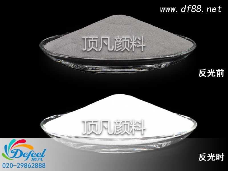 廣州頂凡變色顏料生產的反光粉反光效果好,按折射率可分為ND≥1.90、ND≥1.93、ND≥2.2三種。它具有回歸反光的特性并由此產生較強的回歸反射效應,具有較強的逆向回歸反射性能,能將95%的光線直接反射回光源處。
